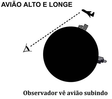 Quando um avião em grande altitude aparece no horizonte ele é visto “em pé”, como se fosse um foguete indo para o espaço. E quando desce no horizonte oposto parece estar caindo de bico. No entanto, no distante local onde ele se encontra, ele está perfeitamente paralelo ao solo. Esse efeito do “avião em pé” ou “caindo” acontece por causa da curvatura da Terra! O que já não ocorre quando ele está mais próximo do observador.