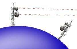 Por exemplo, as microondas têm uma frequência que não permite que elas façam curvas na atmosfera, diferente do que acontece com as ondas de amplitude modulada (AM) ou de ondas curtas (OC), usada por radioamadores, que podem ser transmitidas de um continente a outro. Para que duas antenas de microondas se comuniquem é preciso que elas “olhem” uma para outra. Por isso os técnicos as posicionam o mais alto possível, a fim de evitar que o sinal não chegue devido à curvatura da Terra. Se esta fosse plana não haveria necessidade dessa técnica e duas antenas de microondas teriam um sinal de cobertura estupendo que alcançaria centenas de quilômetros, o que só é possível com várias torres repetidoras, para que o sinal que uma segunda torre recebe da primeira seja retransmitido para a terceira, que por sua vez passará para uma quarta e assim por diante.